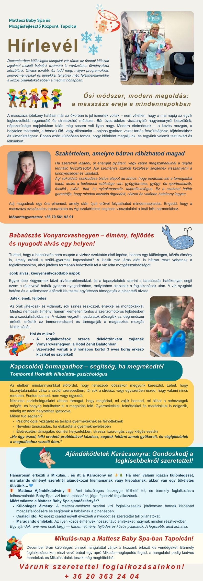 Decemberben különleges hangulat vár rátok: az ünnepi időszak izgalmai mellett babáink számára is varázslatos élményekkel készülünk. Olvass tovább, és tudd meg, milyen programokkal, kedvezményekkel és tippekkel tehetitek még felejthetetlenebbé a közös pillanatokat ebben a meghitt hónapban.